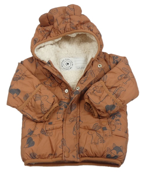Skořicová šusťáková zimní bunda se zvířaty a kapucí George