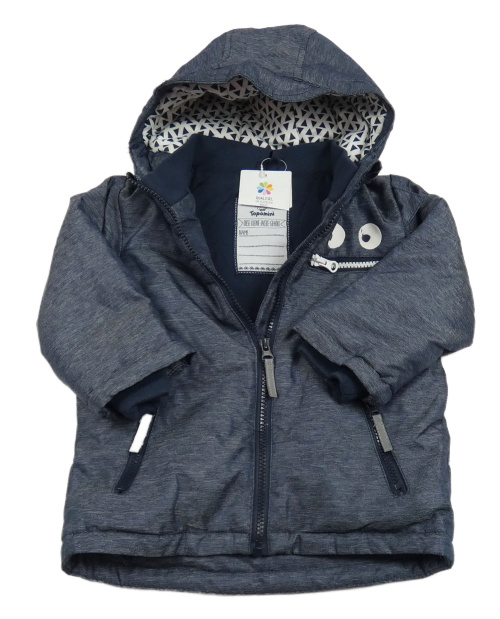 Nové - Tmavomodrá melírovaná šusťáková zateplená bunda s příšerkou a kapucí Topolino