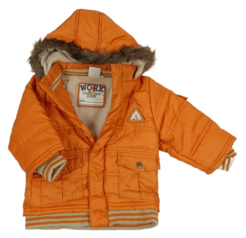 Oranžová šusťáková zimní bunda s kapsami a kapucí