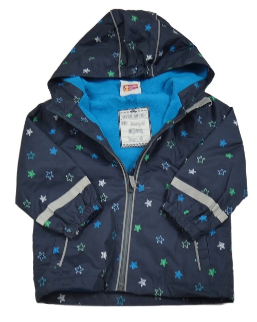 Tmavomodrá šusťáková lehce zateplená bunda s hvězdami a kapucí Topomini