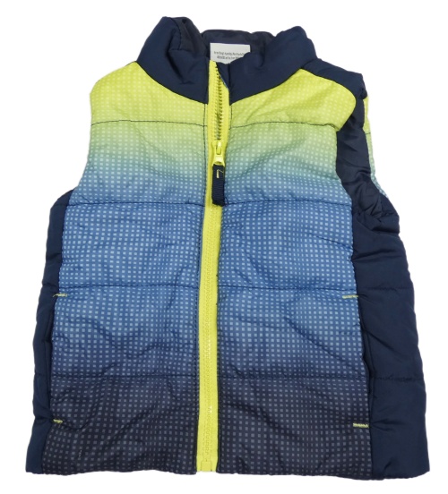 Tmavomdoro-modro-zelená vzorovaná šusťáková zateplená vesta Topomini