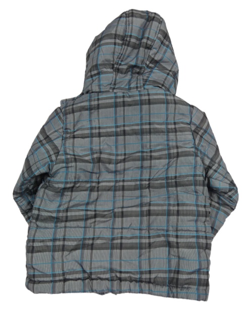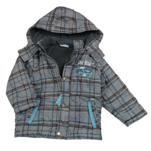 Šedo-modrá kostkovaná šusťáková zimní bunda s autem a kapucí Topolino