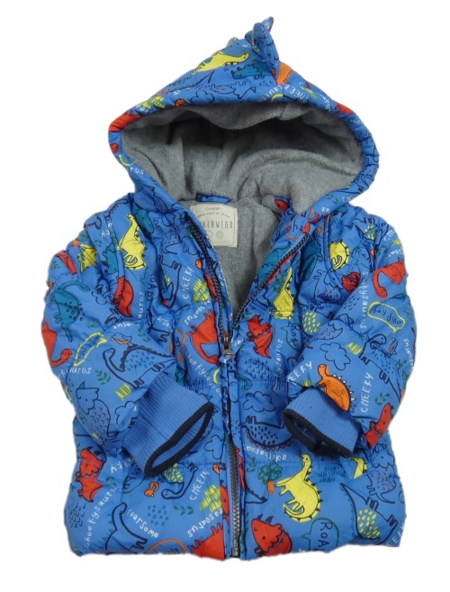 Modrá šusťáková zimní bunda s dinosaury a kapucí George