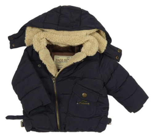 Tmavomodrá šusťáková prošívaná zimní bunda s odepínací kapucí