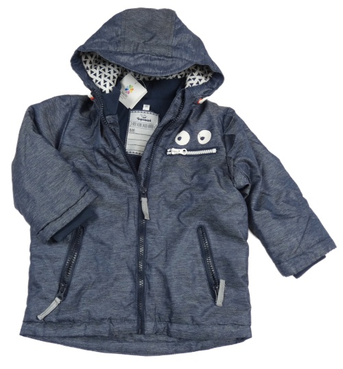 Nové - Tmavomodrá melírovaná šusťáková zateplená bunda s příšerkou a kapucí Topomini