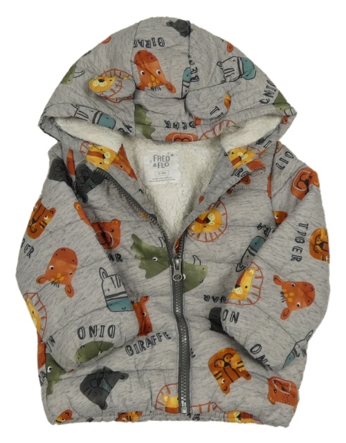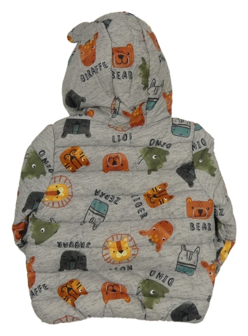 Šedá šusťáková prošívaná zimní bunda se zvířátky a kapucí F&F