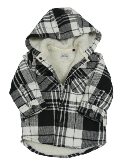 Černo-bílá kostkovaná zateplená košilová bunda s kapucí Next