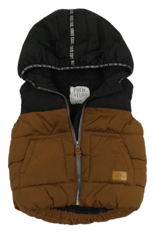 Hnědo-černá šusťáková zateplená vesta s kapucí F&F
