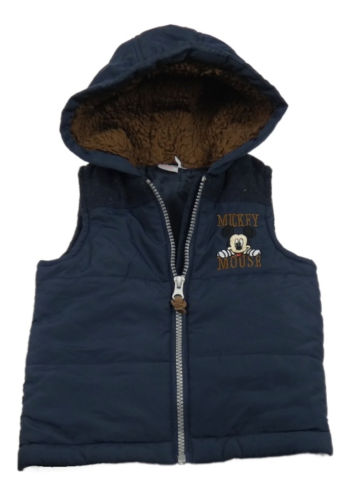 Tmavomodrá šusťáková zateplená vesta s Mickeym a kapucí Disney