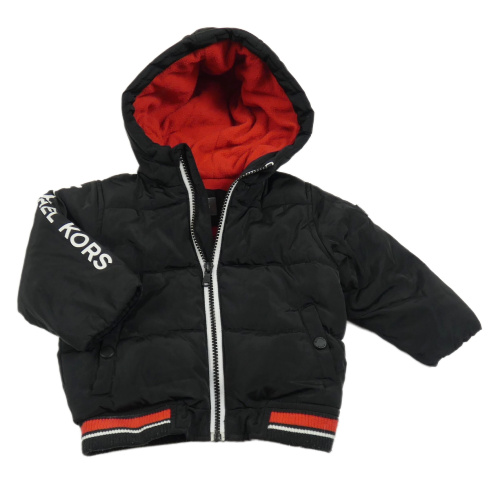 Černo-červená šusťáková zimní bunda s logem a kapucí Michael Kors