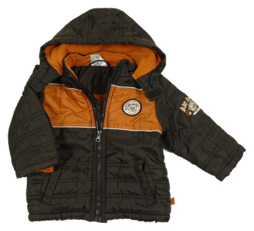 Hnědo-oranžová šusťáková zimní bunda s medvídky a kapucí