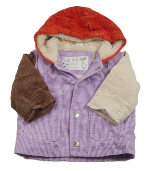 Levandulovo-hnědo-smetanová manšestrová zateplená bunda s kapucí Seed