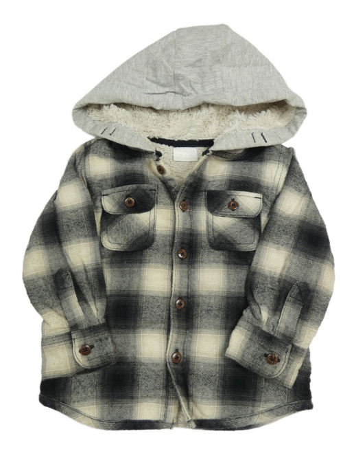 Černo-smetanová kostkovaná zateplená košilová bunda s kapucí F&F