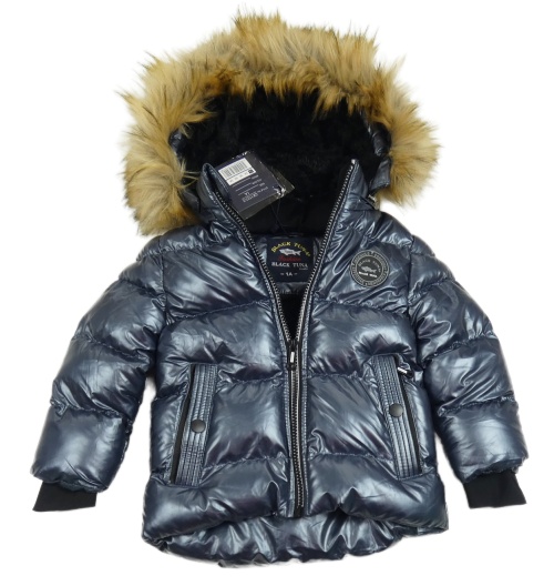 Nové - Šedomodrá lesklá šusťáková zimní bunda s kapucí s kožešinou Black Tuna
