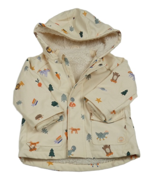 Krémová nepromokavá lehce zateplená bunda s obrázky a kapucí George