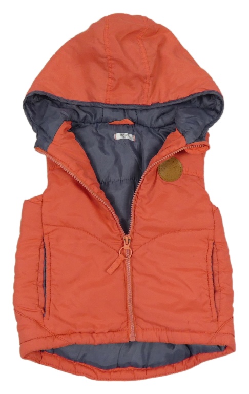 Korálová šusťáková zateplená vesta s nášivkou a kapucí