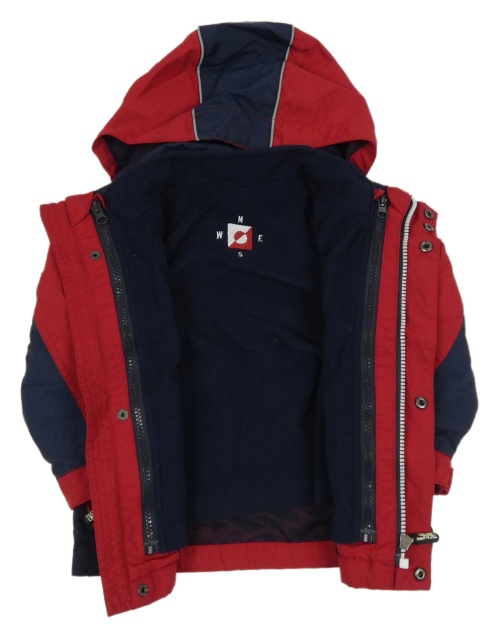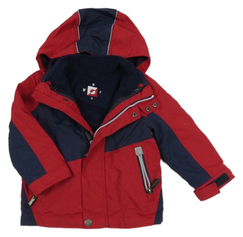 3v1 - Tmavočerveno-tmavomodrá šusťáková celoroční bunda s kapucí + tmavomodrá fleecová mikina C&A