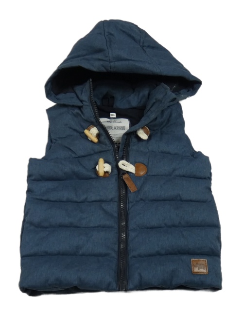 Tmavomodrá šusťáková prošívaná zateplená vesta s kapucí Topomini