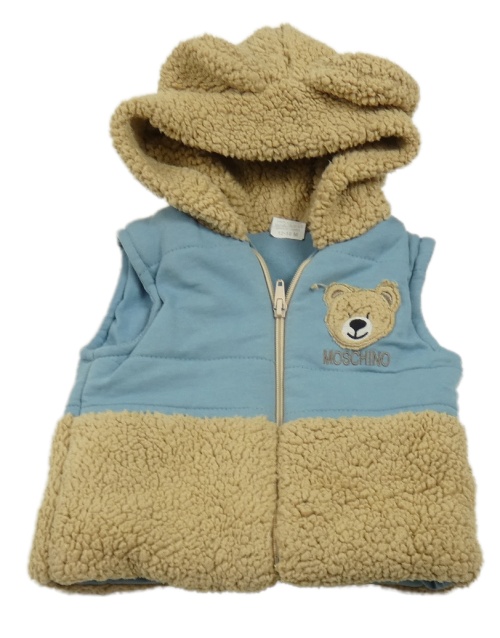 Béžovo-modrá huňato/bavlněná zateplená vesta s kapucí