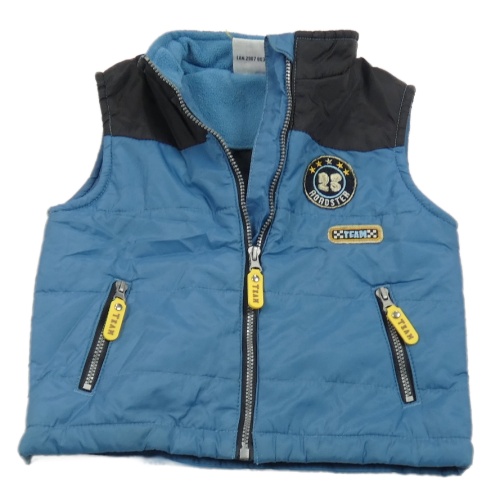 Modro-antracitová šusťáková zateplená vesta s nášivkami Papagino