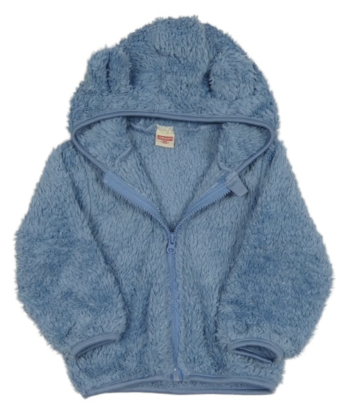 Modrá huňatá bunda s kapucí s oušky