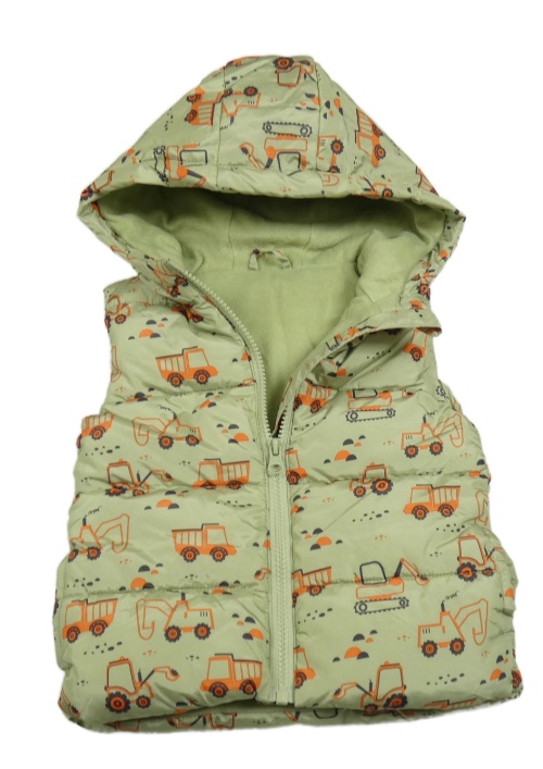 Zelená šusťáková zateplená vesta s bagry a kapucí St. Bernard