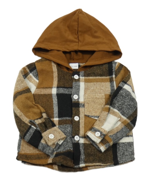 Hnědo-černo-béžová kostkovaná košilová bunda s kapucí Shein