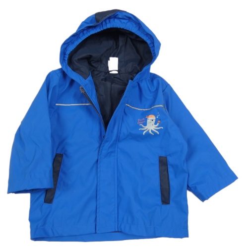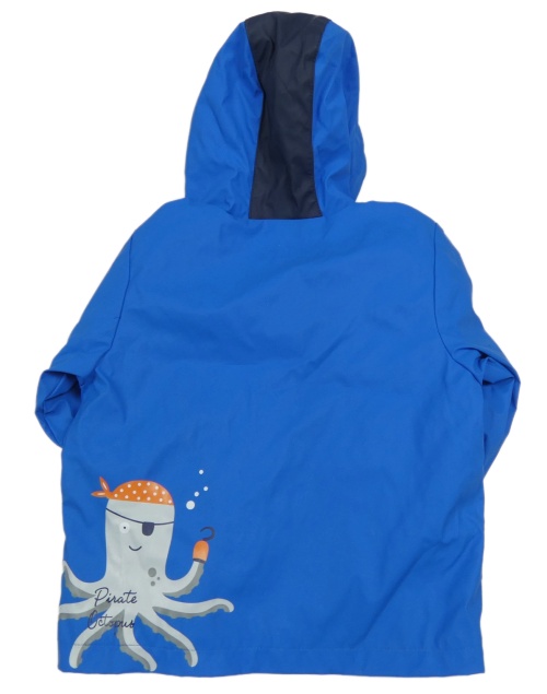 Modrá nepromokavá jarní bunda s chobotnicí a kapucí