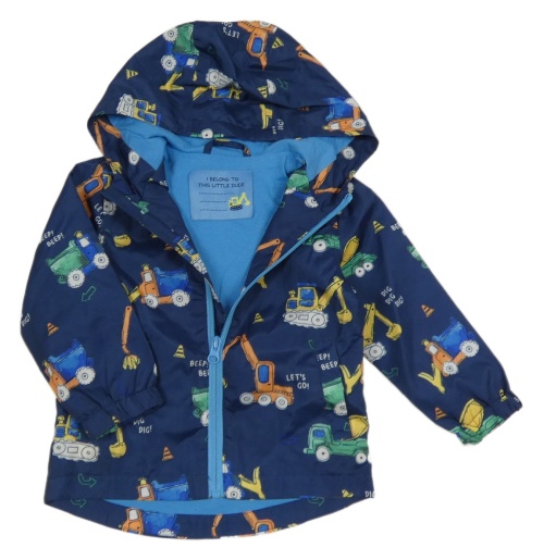 Tmavomodrá šusťáková jarní bunda s auty a kapucí St. Bernard