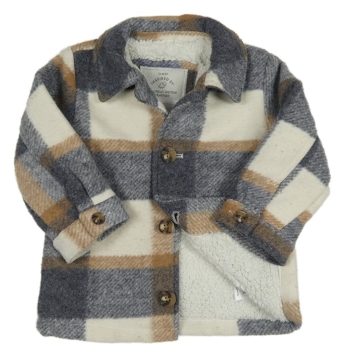 Šedo-bílo-béžová kostkovaná flaušová košilová zateplená bunda George