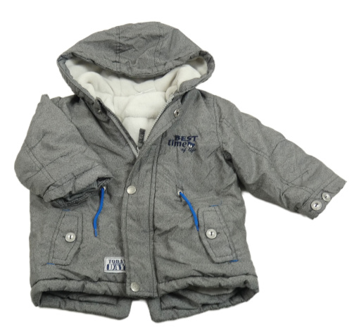 Šedá melírovaná šusťáková zimní parka s nápisy a medvídkem a kapucí Ergee