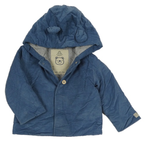 Modro/tmavomodrá manšestrová zateplená bunda s medvídkem a kapucí s oušky Next
