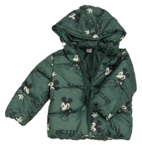 Khaki šusťáková zimní bunda s Mickeym a kapucí H&M