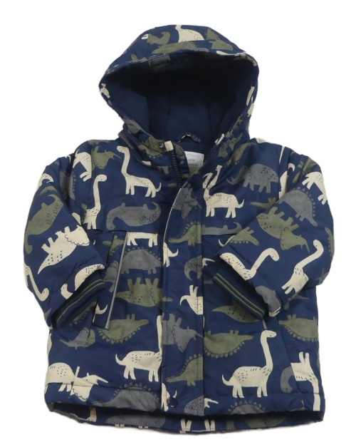 Tmavomodrá šusťáková zimní bunda s dinosaury a kapucí Primark