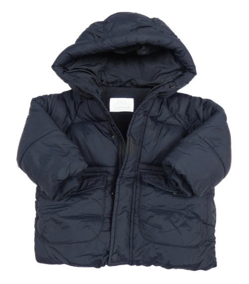 Tmavomodrá prošívaná šusťáková zimní bunda s kapucí ZARA