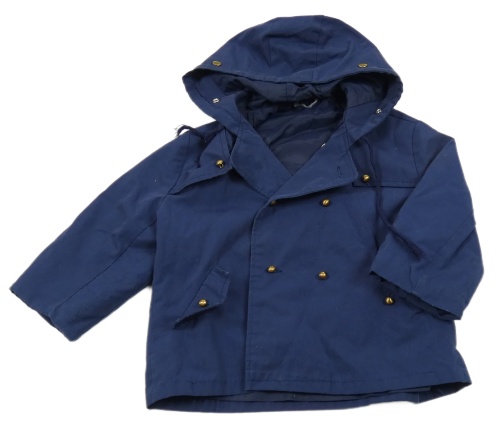Tmavomodrý plátěný jarní kabát s kapucí