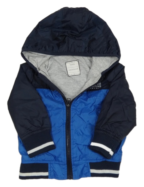 Modro-tmavomodrý šusťákový jarní bomber s nápisy a kapucí ZEEMAN