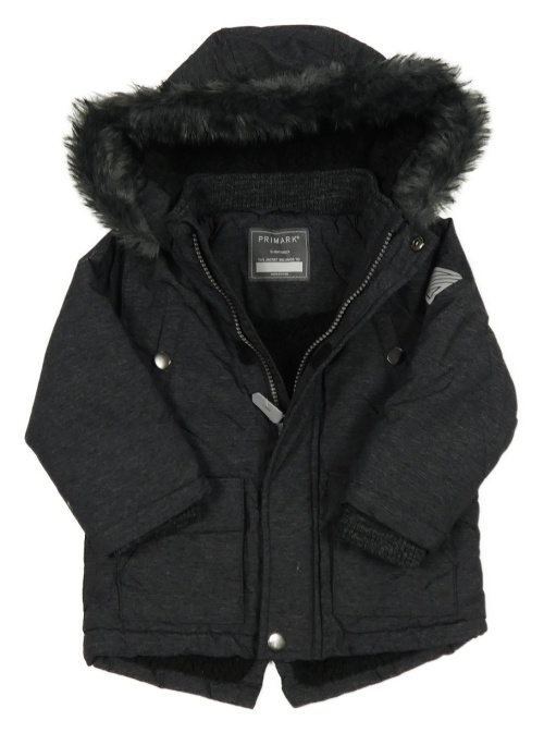 Tmavošedá šusťáková zimní bunda s kapucí s kožešinou Primark