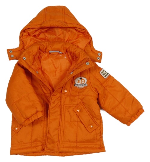 Oranžová šusťáková zimní bunda s nášivkou a kapucí
