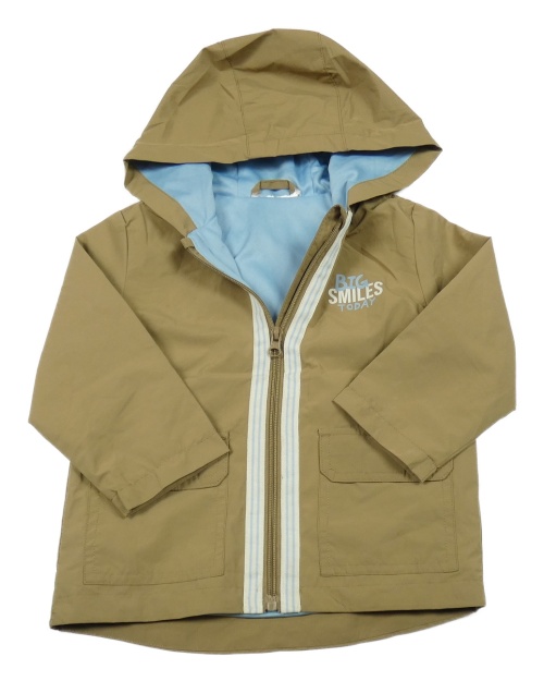 Písková šusťáková jarní bunda s nápisy a kapucí