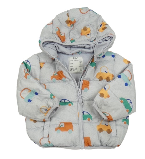 Šedá šusťáková zimní bunda s auty a kapucí M&S