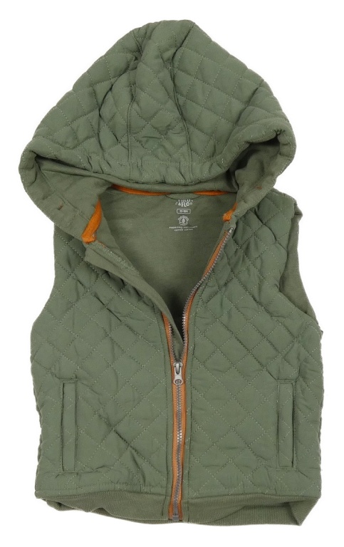 Khaki šusťáková prošívaná zateplená vesta s kapucí F&F