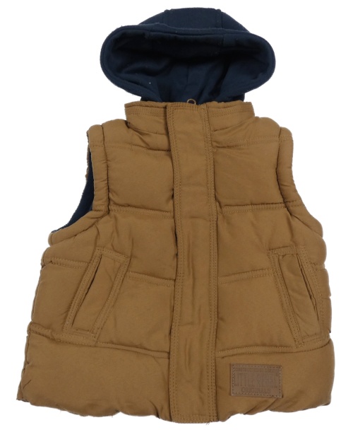 Hnědo-tmavomodrá šusťáková zateplená vesta s teplákovou kapucí Rebel