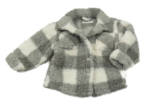 Šedo-bílá kostkovaná huňatá košilová bunda Next