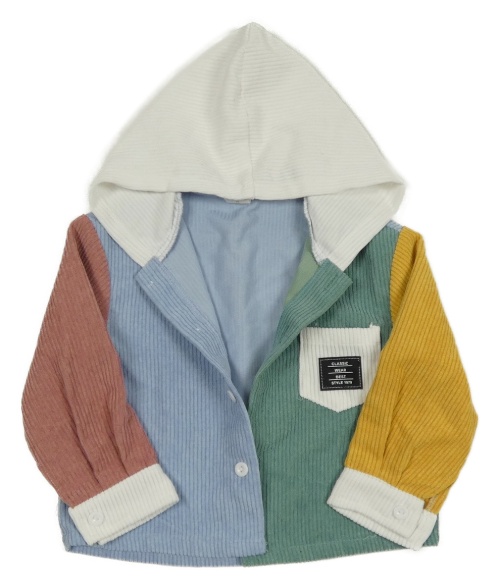 Bílo-modro-růžovo-hořčicová žebrovaná sametová košilová bunda s kapucí Shein
