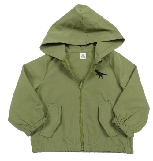 Khaki šusťáková bunda s dinosaurem a kapucí Shein