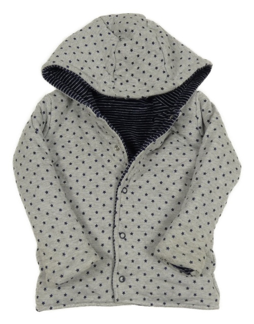 Tmavomodro-světlešedý pruhovaný sametový zateplený oboustranný kabátek s kapucí George