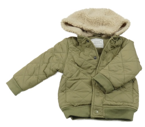 Khaki prošívaná šusťáková zateplená bunda s huňatou kapucí Primark