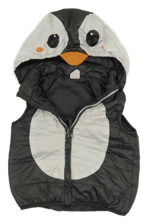 Tmavošedo-bílá šusťáková zateplená vesta s kapucí - tučňák H&M