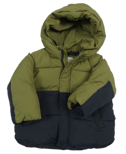 Khaki-tmavomodrá šusťáková zimní bunda s kapucí ZARA